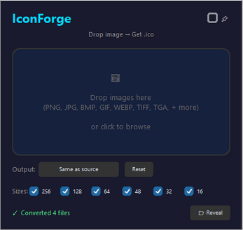 Made for anyone who need icons without opening Photoshop or hunting for online converters.