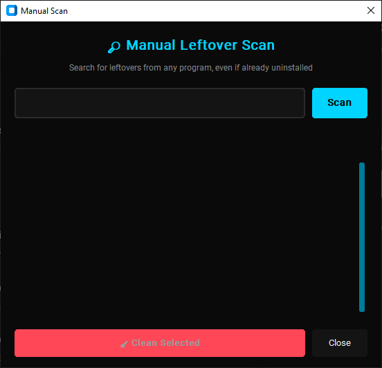 - Manual Scan — Search for leftovers from programs already uninstalled (ghost hunting mode)