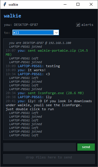 What it does: Drop files. Send messages. Anyone on your WiFi running walkie sees each other automatically. No IP addresses, no setup, no cloud middleman.